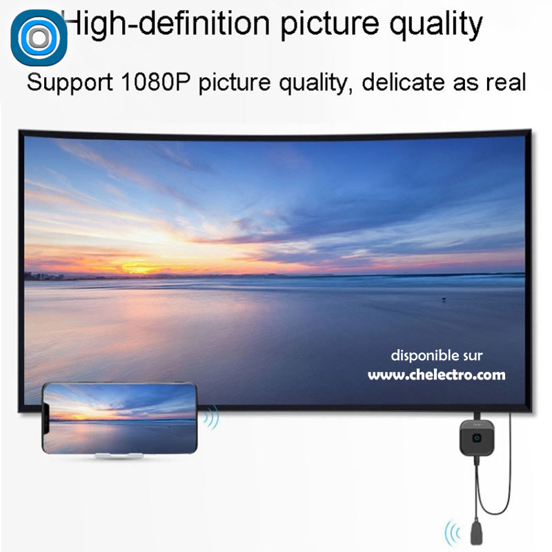 - Résolution du signal vidéo HD jusqu’à 1920*1080P @ 60Hz, prend en charge la connexion automatique WIFI
