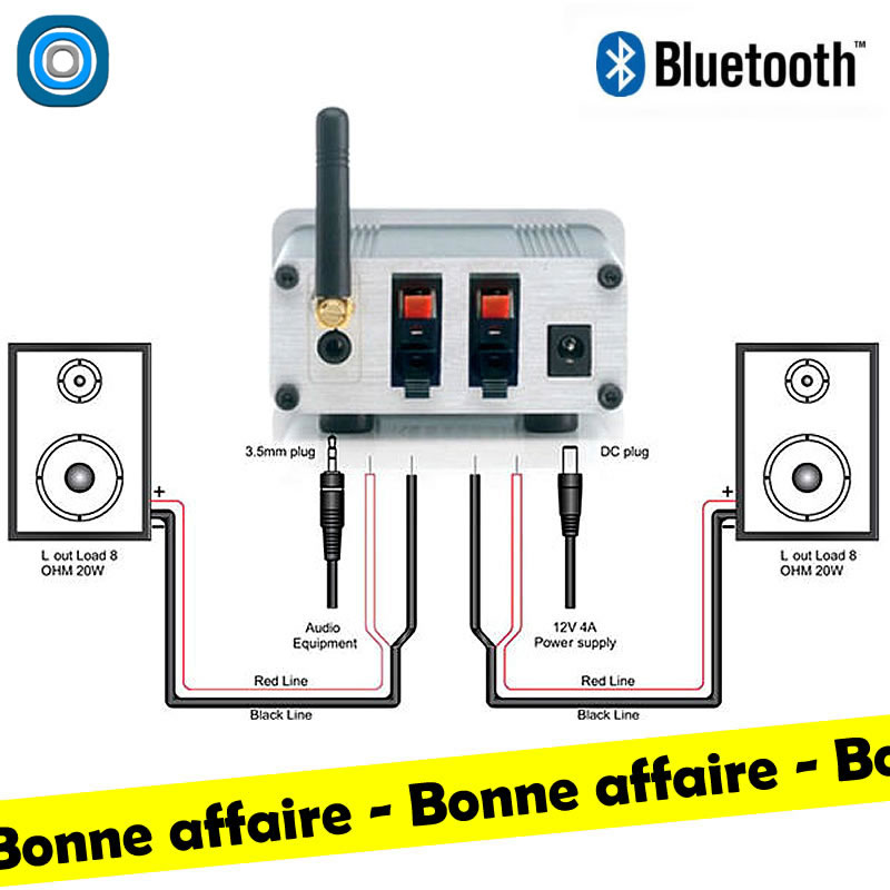 Connectez une paire de bonnes enceintes (passives) à ce récepteur et amplificateur Bluetooth 2 en 1 et appairez-le à votre smartphone. Vous créez ainsi avec le BoomBoom 460 votre propre système de diffusion partout dans la maison. Une qualité parfaite à un prix abordable. Avec une entrée auxiliaire supplémentaire pour une utilisation avec un PC ou des lecteurs mp3 sans Bluetooth. Design compact avec un boîtier en aluminium massif et un maniement simple.