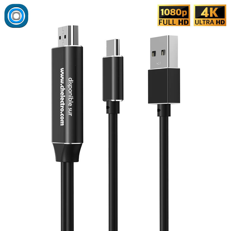 • Cable USB type C vers HDMI avec alimentation complémentaire USB A (port USB standard)