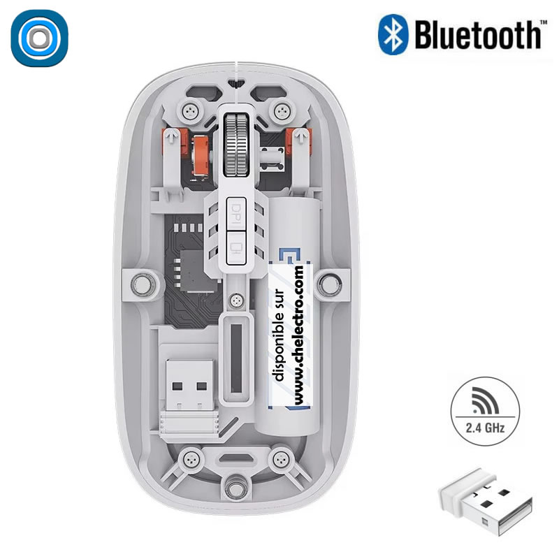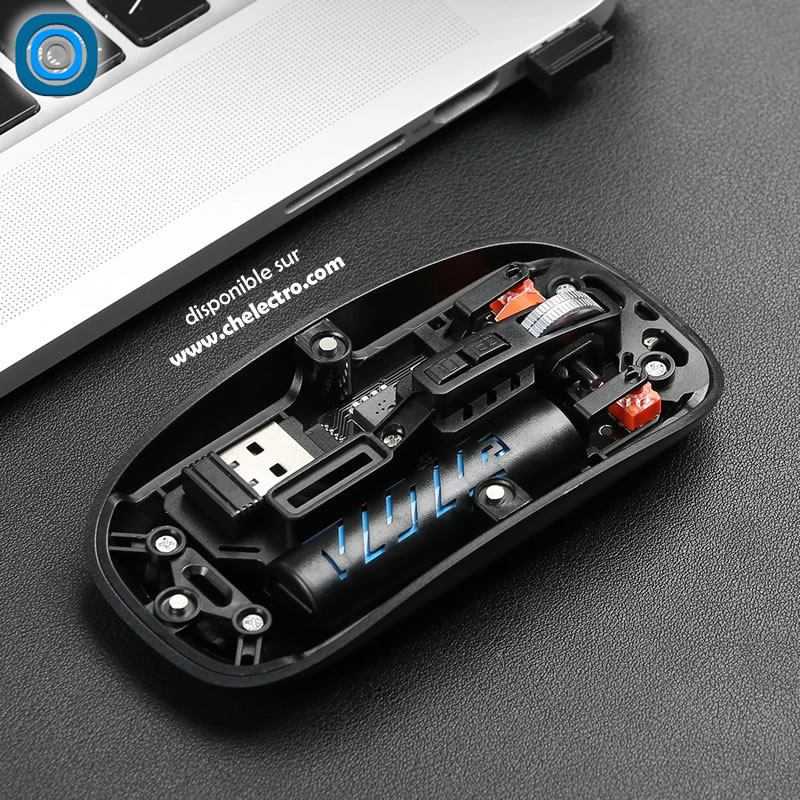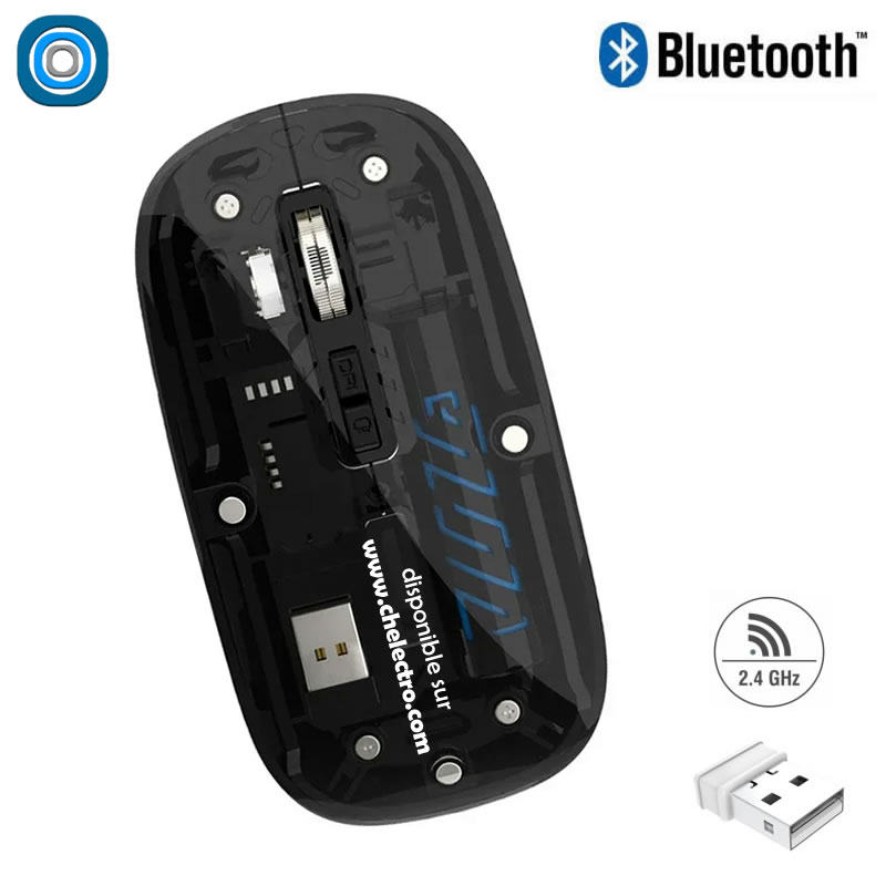 Souris optique transparente slim et design stylé Apple Magic Mouse. Fonctionne avec le dongle USB 2.4GHz ou le bluetooth. Compatible avec les : ordinateurs, tablettes, smartphones Windows / iMac / MacBook / iPad PRO / iPhone / Android / Samsung / Galaxy Tab / Galaxy S / Xiaomi / Oppo / Redmi / OnePlus / Realme / Huawei / Microsoft Surafce PRO / Dell / HP / Asus / Lenovo / MSI / Linux… Avec batterie rechargeable intégrée et port de charge USB type C. Souris avec clics silencieux, compatible Windows, Mac, Android, Linux…