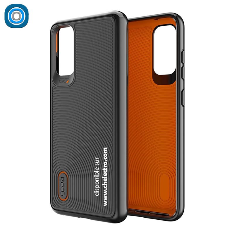 Coque / pochette de protection Gear4 Battersea pour smartphone Samsung Galaxy S20 simple de 6,2 pouces de 2020. En plastique semi rigide avec protection renforcée D30 (Orange), military grade… Couleur : noir / orange.