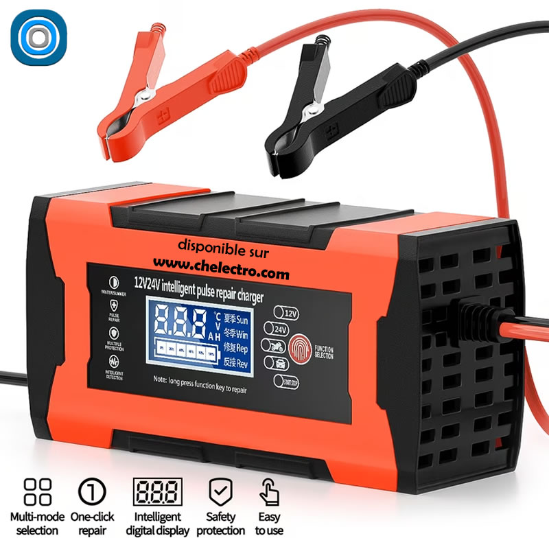 Chargeur intelligent multifonctions, pour batterie auto, moto, camion de 12 ou 24 Volts…